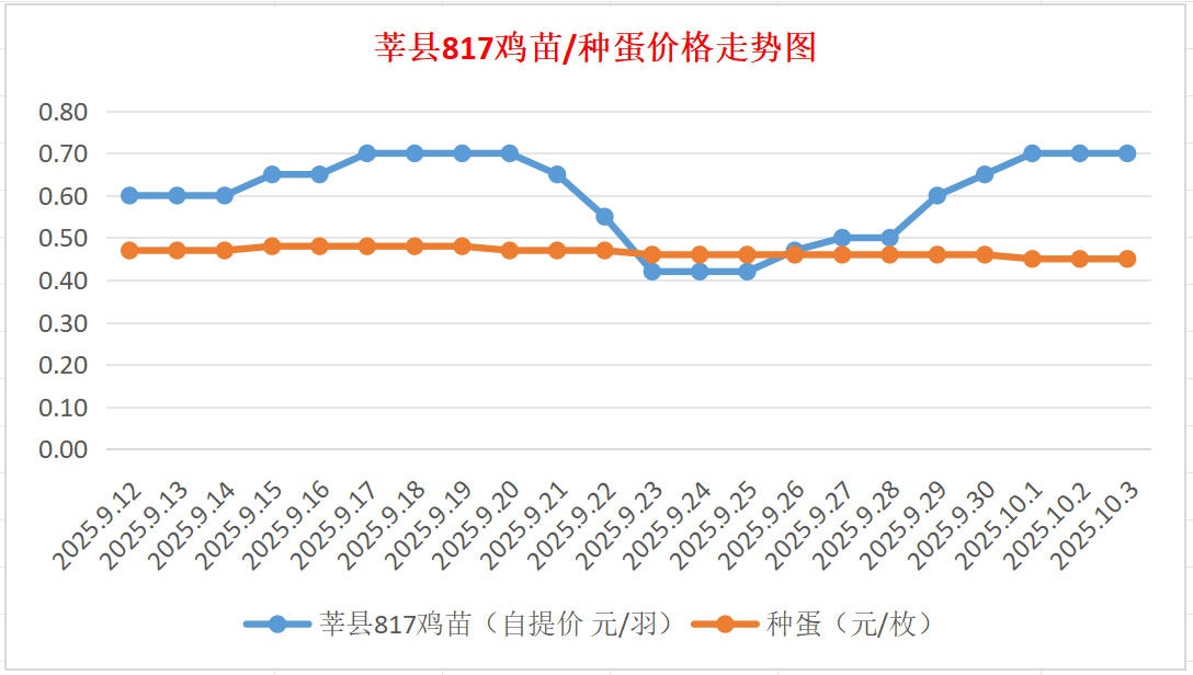 817鸡苗(混合):报价自提0.70元/羽。(稳)