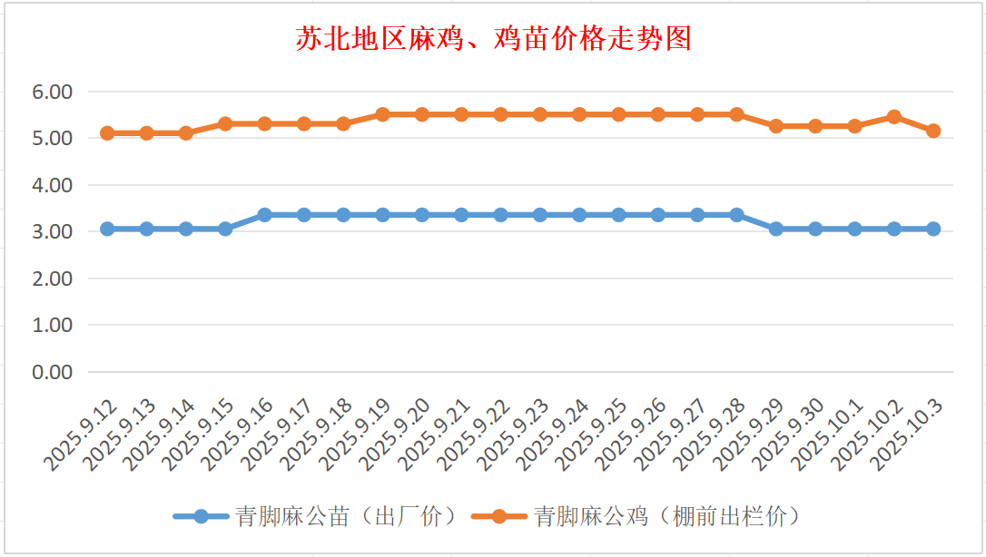 苏北地区麻鸡、鸡苗价格走势图(图源:鸡病专业网)