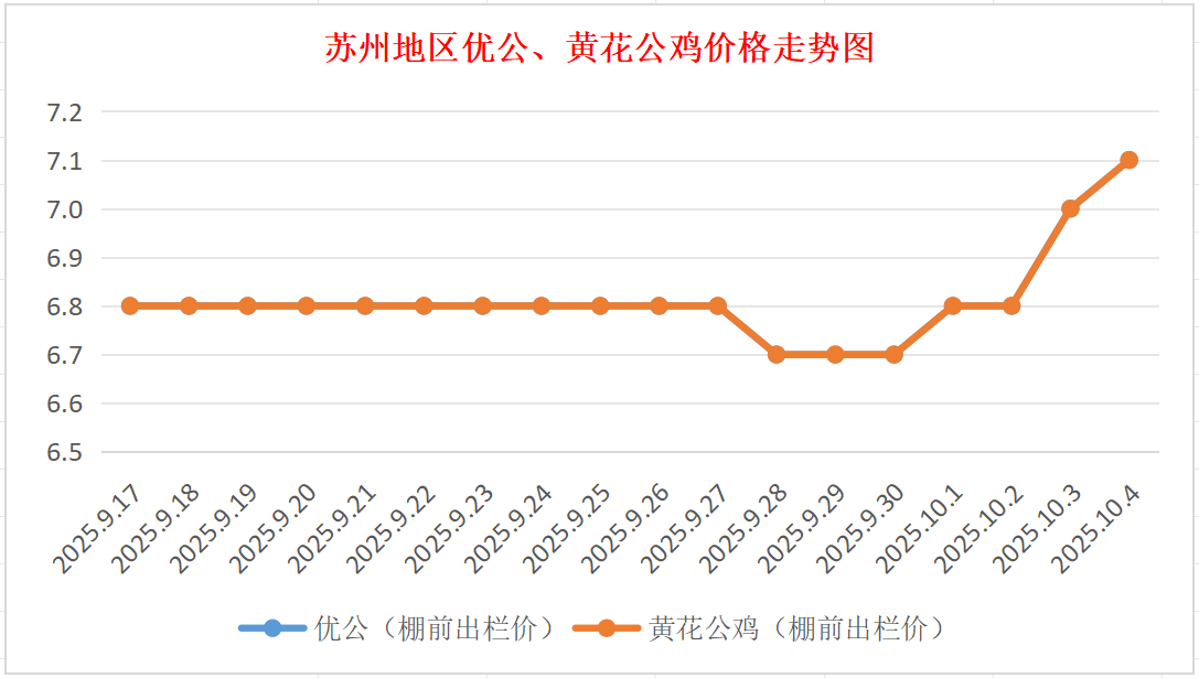 苏州地区优公、黄花公鸡价格走势图(来源:鸡病专业网)