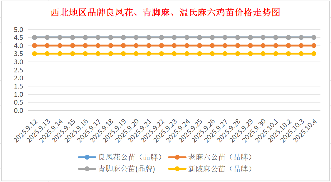 品牌新陂麻:价格稳定,到户价公苗4.50元/羽,稳。