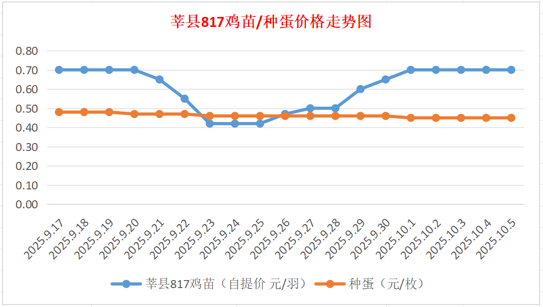 817鸡苗(混合):报价自提0.65元/羽。(走低三分)