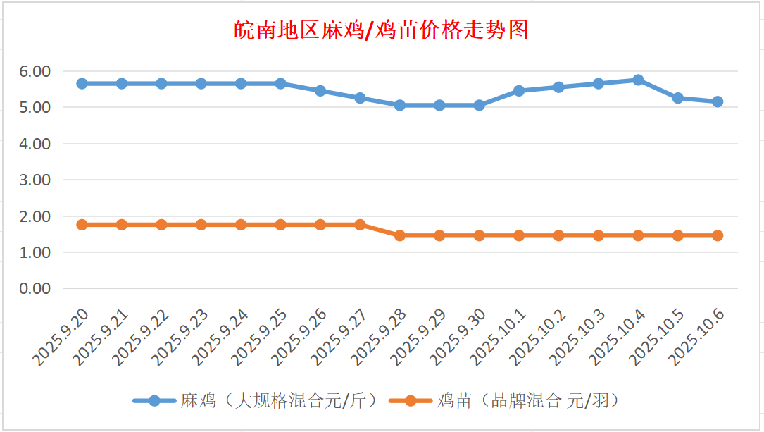 鸡病专业网独家信息:2025年10月6日皖南地区817-麻鸡行情最新走势