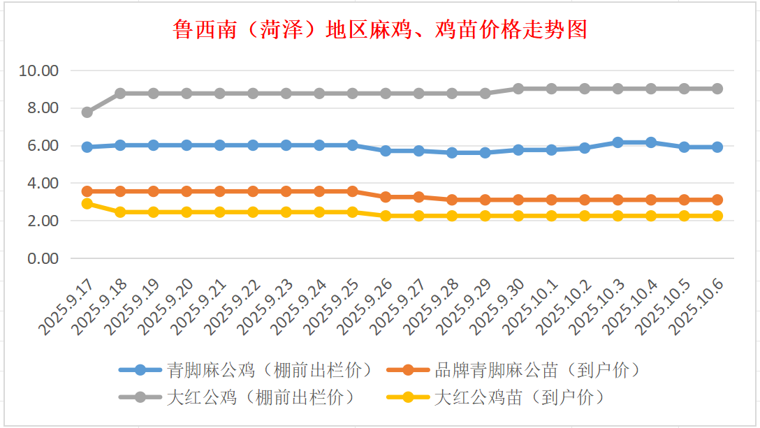 菏泽地区麻鸡、鸡苗价格走势图(来源:鸡病专业网)