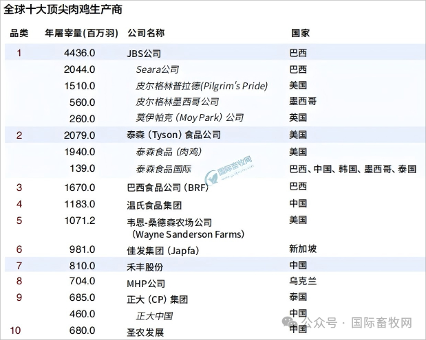 泰国的正大集团(CP Group)是正大食品(CP Foods)的最大股东,每年生产6.85亿羽肉鸡。正大食品是一家专注于农牧食品领域的控股集团,其业务主要分布在亚洲和欧洲。该集团的畜牧业务包括肉鸡、鸭、蛋鸡、生猪以及水产养殖等多种品类。