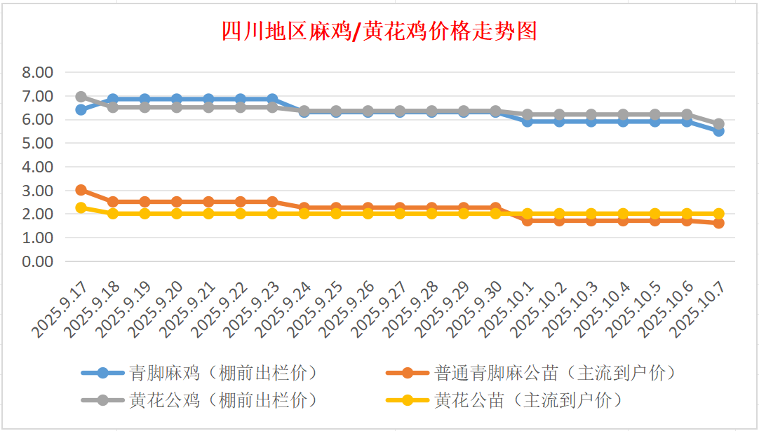四川地区麻鸡/黄花公价格走势图(来源:鸡病专业网)