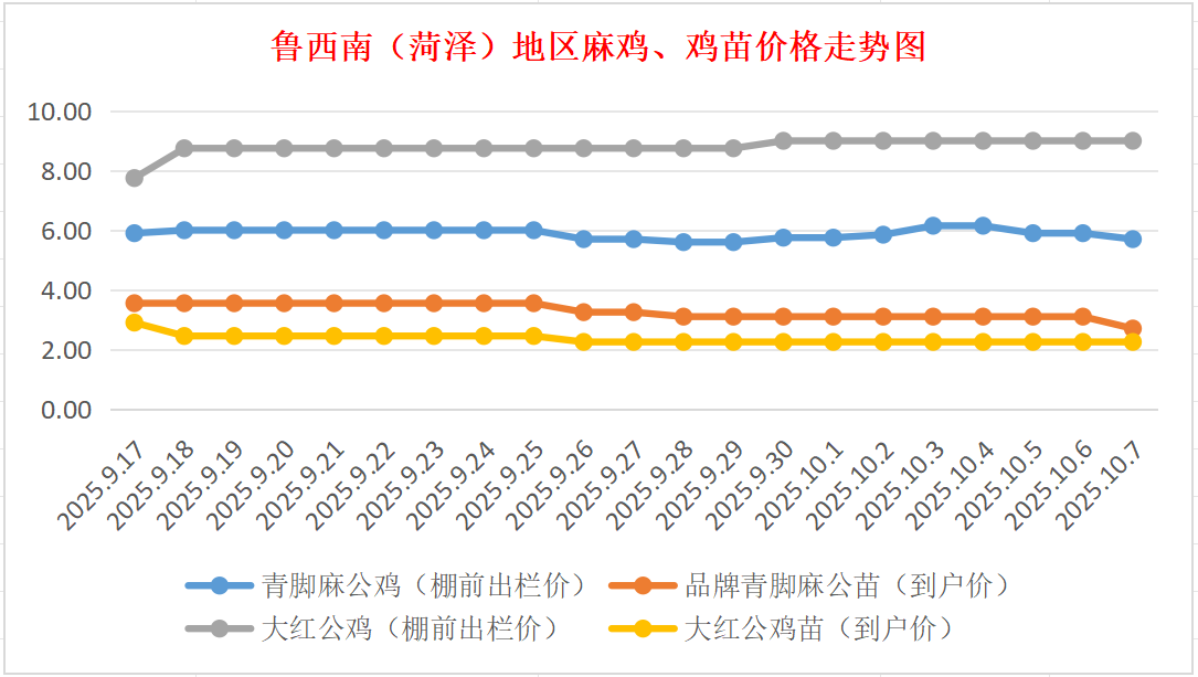菏泽地区麻鸡、鸡苗价格走势图(来源:鸡病专业网)