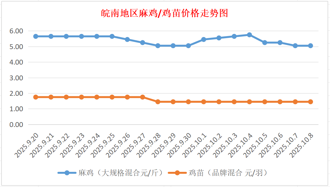 鸡病专业网独家信息:2025年10月8日皖南地区817-麻鸡行情最新走势