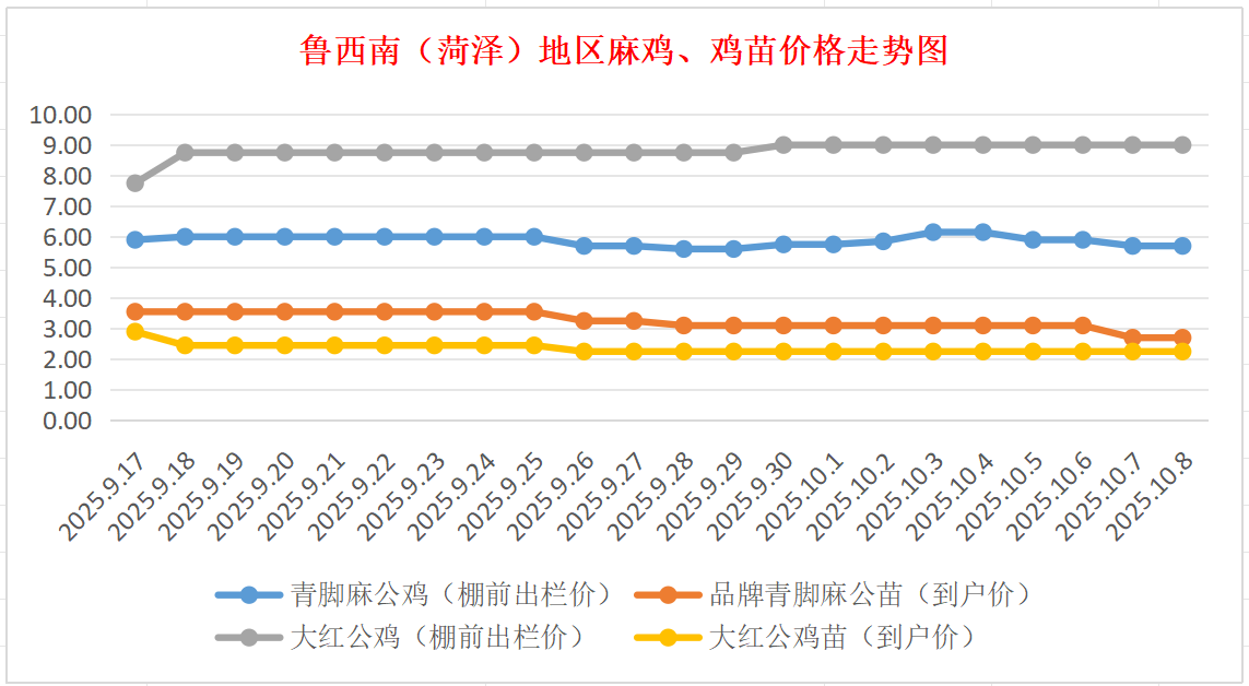 菏泽地区麻鸡、鸡苗价格走势图(来源:鸡病专业网)