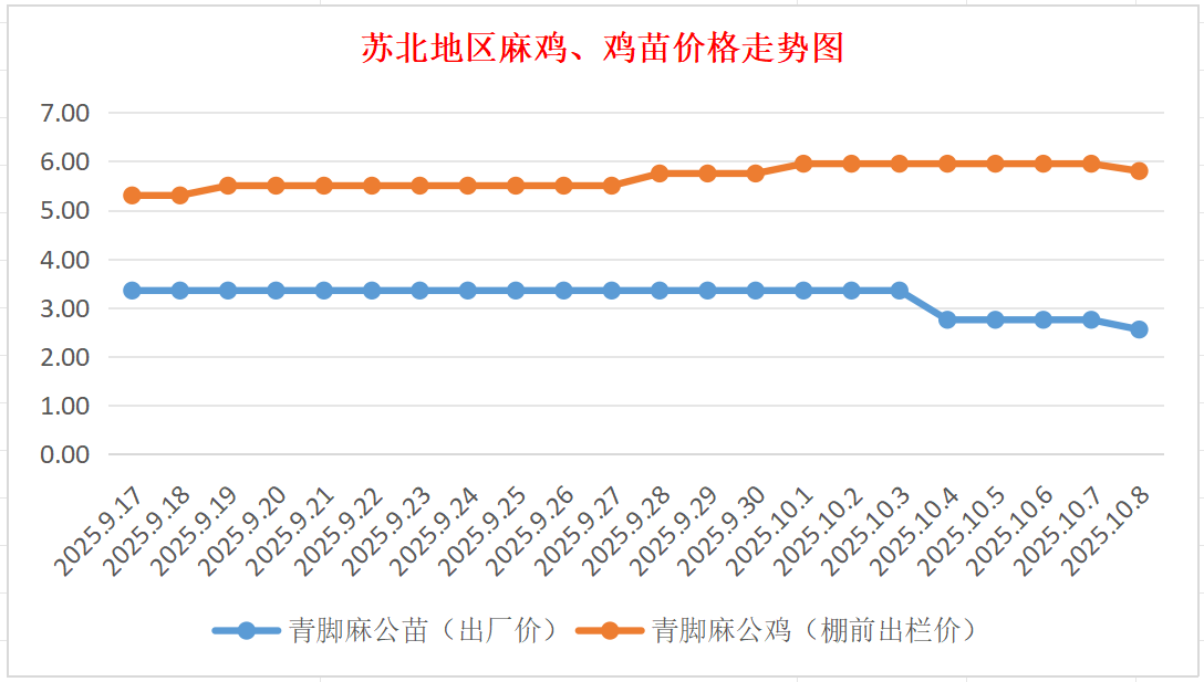 苏北地区麻鸡、鸡苗价格走势图(图源:鸡病专业网)