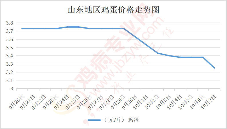 鸡病专业网消息:10月7日,山东地区莱阳鸡蛋3.25元/斤,落;青岛鸡蛋3.25元/斤,落;诸城鸡蛋3.3元/斤,落;安丘鸡蛋3.2元/斤,落;昌乐鸡蛋3.2元/斤,落;寿光鸡蛋3.2元/斤,落;昌邑鸡蛋3.2元/斤,落;高密鸡蛋3.3元/斤,落;青州鸡蛋3.2元/斤,落;临朐鸡蛋3.2元/斤,落;莱州鸡蛋3.25元/斤,落;威海鸡蛋3.25元/斤,落;临沭鸡蛋3.2元/斤,落;沂水鸡蛋3.2元/斤,落;沂南鸡蛋3.2元/斤,落;莒南鸡蛋3.2元/斤,落;兰陵县鸡蛋3.2元/斤,落;日照鸡蛋3.2元/斤,落;莒县鸡蛋3.2元/斤,落;日照辛萁商贸鸡蛋3.2元/斤,落;泗水鸡蛋价格94元/30斤,落;济宁、汶上鸡蛋价格94元/30斤,落;梁山、东平红蛋价格94元/30斤,落;枣庄滕州地区鸡蛋混码主流到户96元/30斤,落;泰安地区新泰鸡蛋价格94元/30斤,落;菏泽地区曹县主流到户94元/30斤,落;成武鸡蛋价格94元/30斤,落;单县到户94元/30斤,落;聊城莘县92元/30斤,落。