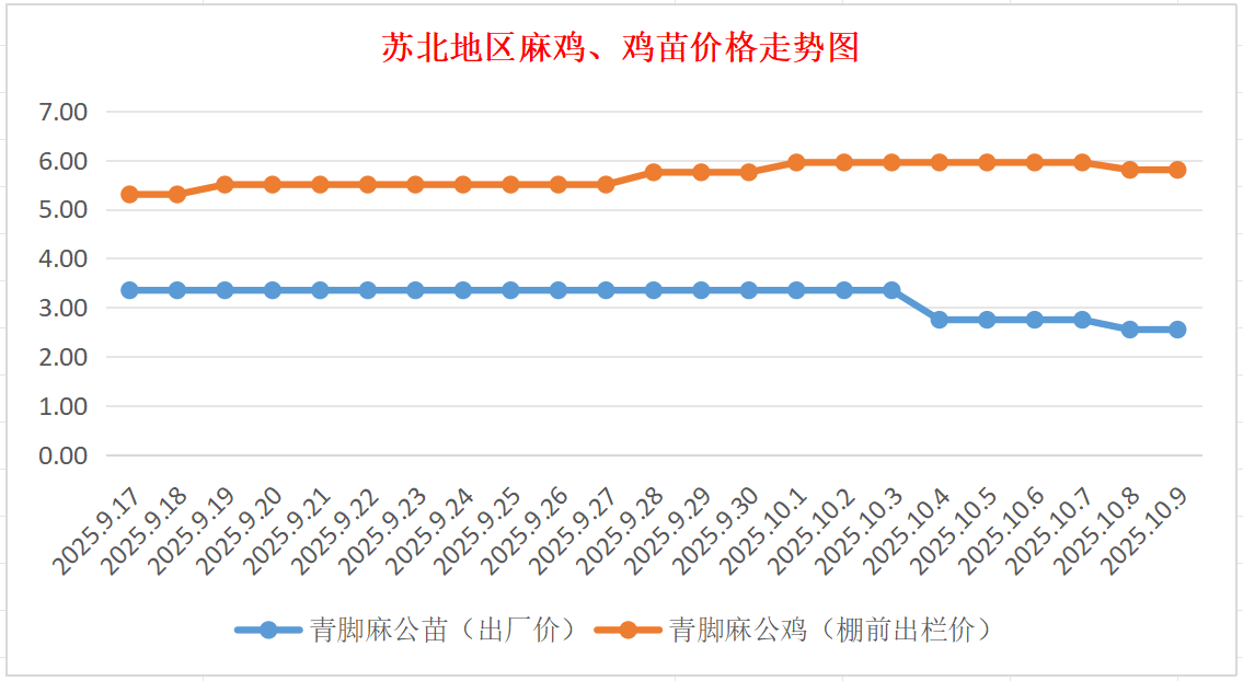 苏北地区麻鸡、鸡苗价格走势图(图源:鸡病专业网)