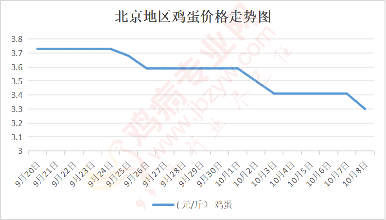 鸡病专业网消息:10月8日,北京大洋路鸡蛋主流批发价格145-146元/44斤,落,到货5台正常,成交灵活,走货正常;回龙观鸡蛋145元/44斤,落;顺义石门鸡蛋145元/44斤,落。