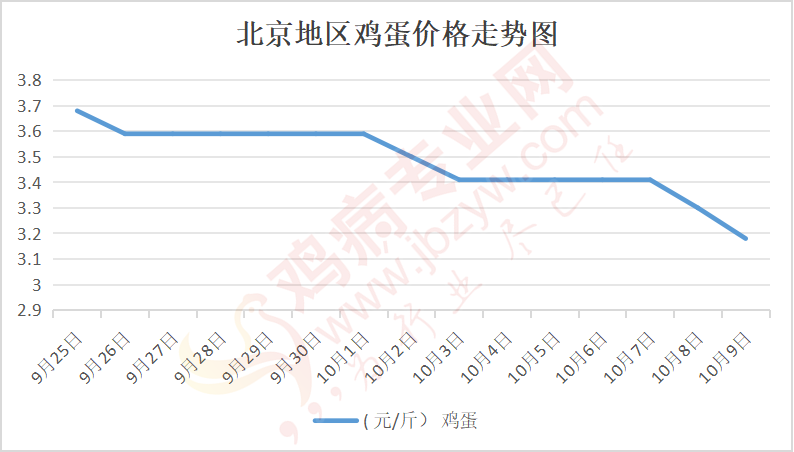 鸡病专业网消息:10月9日,北京大洋路鸡蛋主流批发价格140-141元/44斤,落,到货5台正常,成交灵活,走货正常;回龙观鸡蛋140元/44斤,落;顺义石门鸡蛋140元/44斤,落。