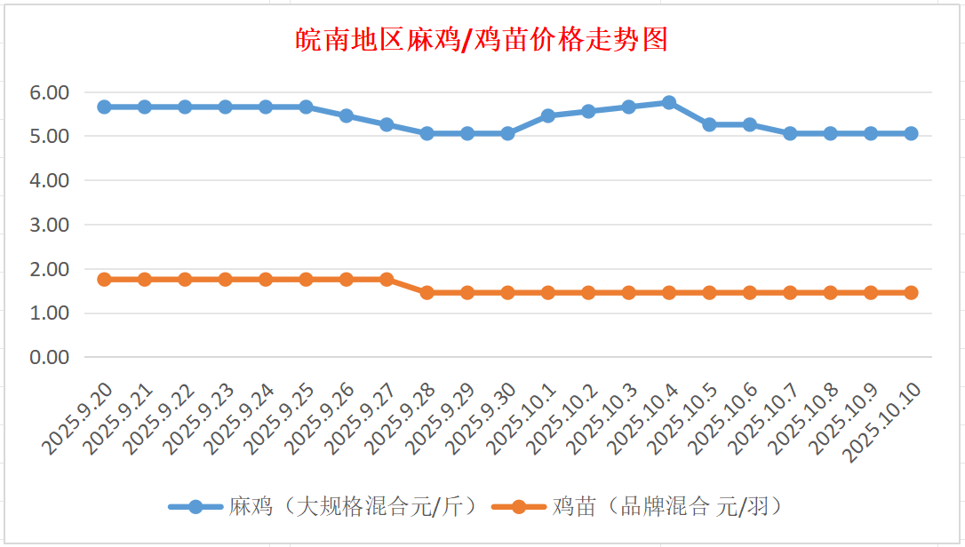鸡病专业网独家信息:2025年10月10日皖南地区817-麻鸡行情最新走势