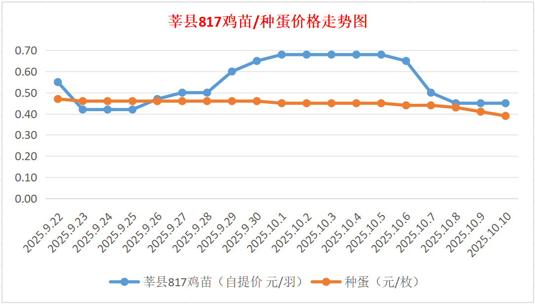 817鸡苗(混合):报价自提0.45元/羽。(稳)