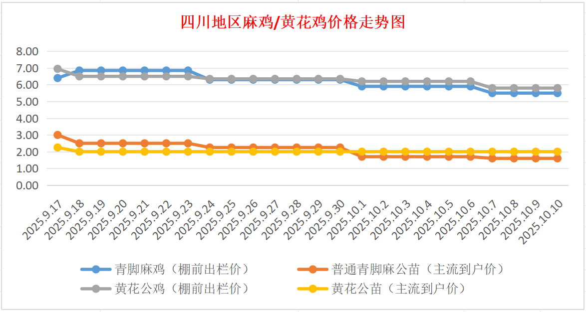 四川地区麻鸡/黄花公价格走势图(来源:鸡病专业网)
