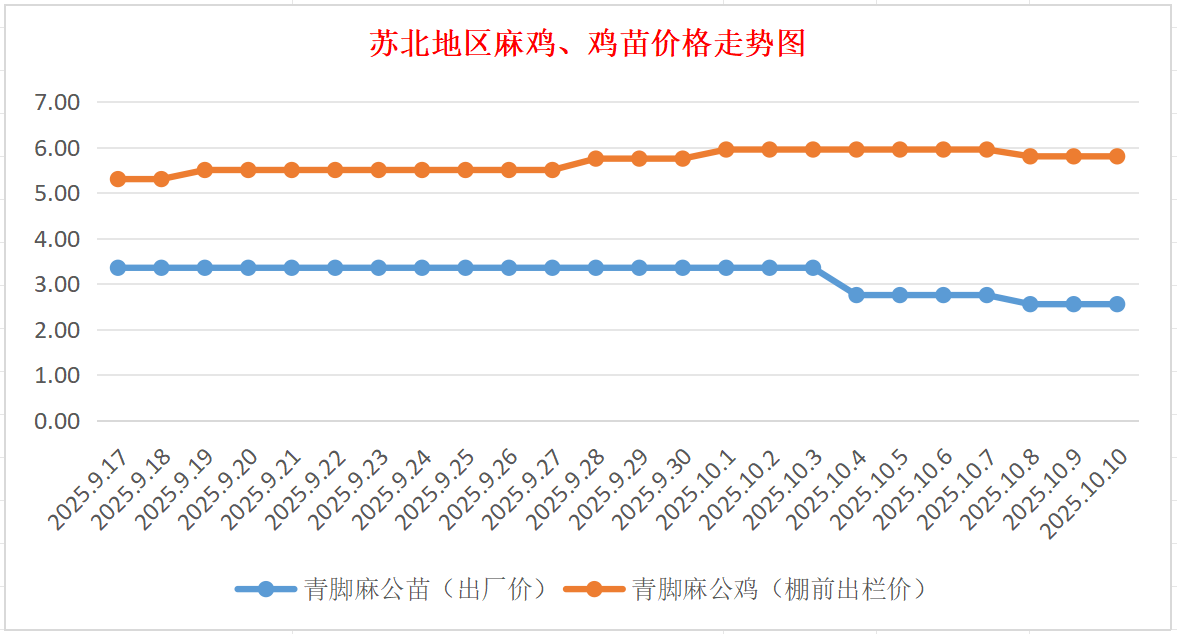 苏北地区麻鸡、鸡苗价格走势图(图源:鸡病专业网)