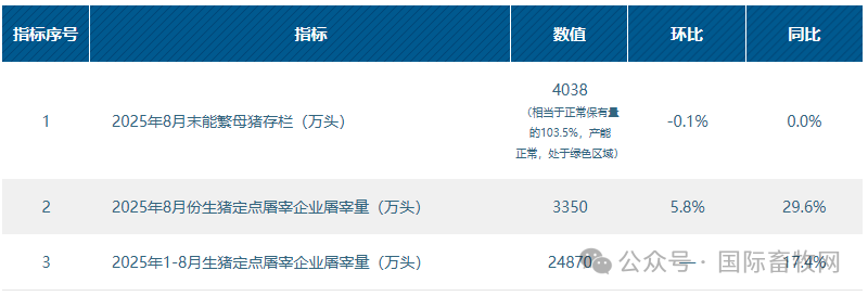 产能过剩是当前养猪业面临的核心问题。农业农村部数据显示,8月末全国能繁母猪存栏量4038万头,为3900万头正常保有量的103.5%,较7月末下降4万头,环比-0.1%。