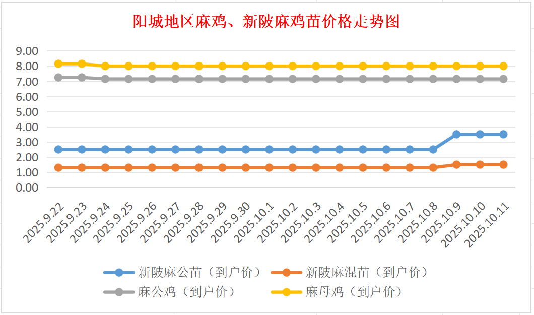 阳城地区麻鸡、新陂麻鸡苗价格走势图(来源:鸡病专业网)