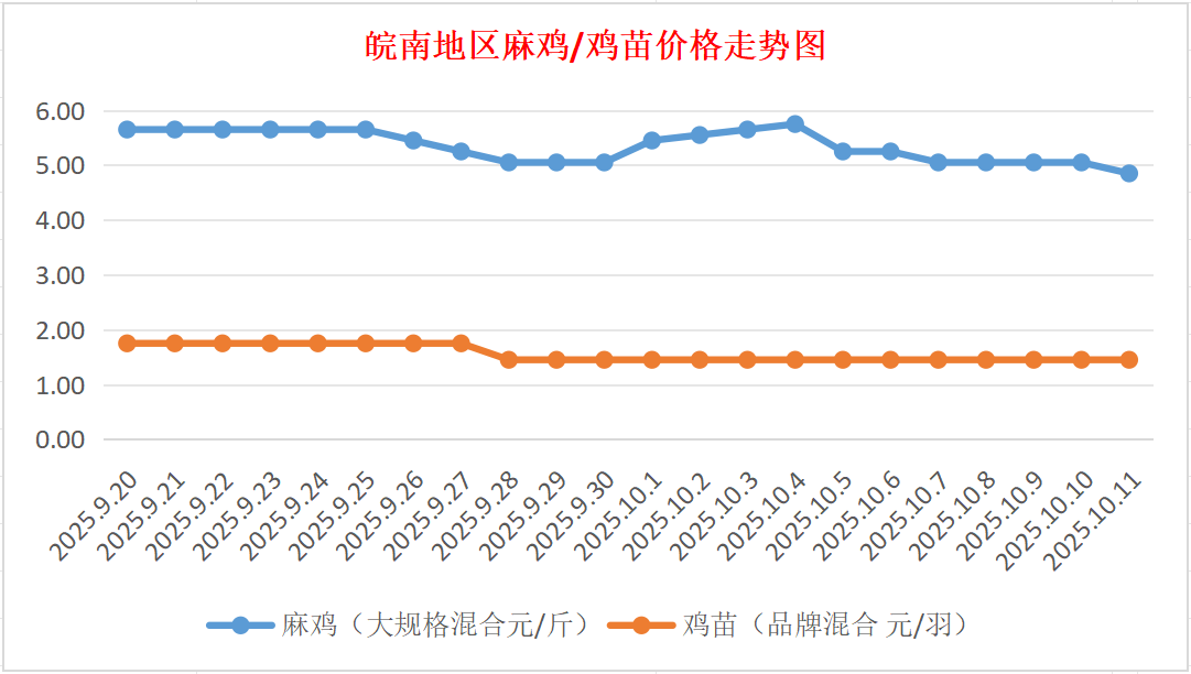 鸡病专业网独家信息:2025年10月11日皖南地区817-麻鸡行情最新走势