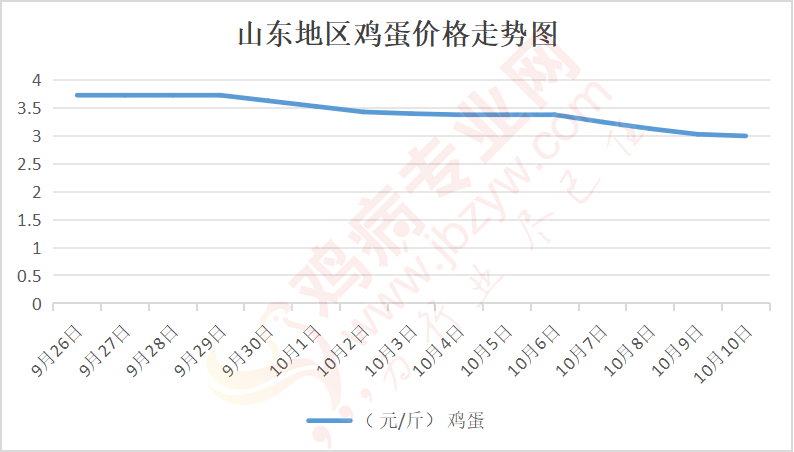 鸡病专业网消息:10月10日,山东地区莱阳鸡蛋3.05元/斤,落;青岛鸡蛋3.05元/斤,落;诸城鸡蛋3元/斤,稳;安丘鸡蛋2.8元/斤,稳;昌乐鸡蛋2.8元/斤,稳;寿光鸡蛋2.8元/斤,稳;昌邑鸡蛋2.8元/斤,稳;高密鸡蛋3元/斤,稳;青州鸡蛋2.8元/斤,稳;临朐鸡蛋2.8元/斤,稳;莱州鸡蛋3.05元/斤,落;威海鸡蛋3.05元/斤,落;临沭鸡蛋2.9元/斤,稳;沂水鸡蛋2.9元/斤,稳;沂南鸡蛋2.9元/斤,稳;莒南鸡蛋2.9元/斤,稳;兰陵县鸡蛋2.9元/斤,稳;日照鸡蛋2.9元/斤,稳;莒县鸡蛋2.9元/斤,稳;日照辛萁商贸鸡蛋2.9元/斤,稳;泗水鸡蛋价格85元/30斤,稳;济宁、汶上鸡蛋价格85元/30斤,稳;梁山、东平红蛋价格85元/30斤,稳;枣庄滕州地区鸡蛋混码主流到户88元/30斤,稳;泰安地区新泰鸡蛋价格85元/30斤,稳;菏泽地区曹县主流到户85元/30斤,稳;成武鸡蛋价格85元/30斤,稳;单县到户85元/30斤,稳;聊城莘县83元/30斤,稳。