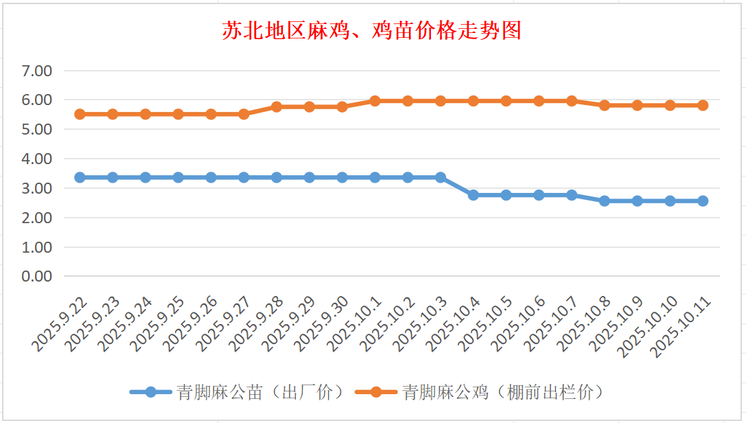 苏北地区麻鸡、鸡苗价格走势图(图源:鸡病专业网)