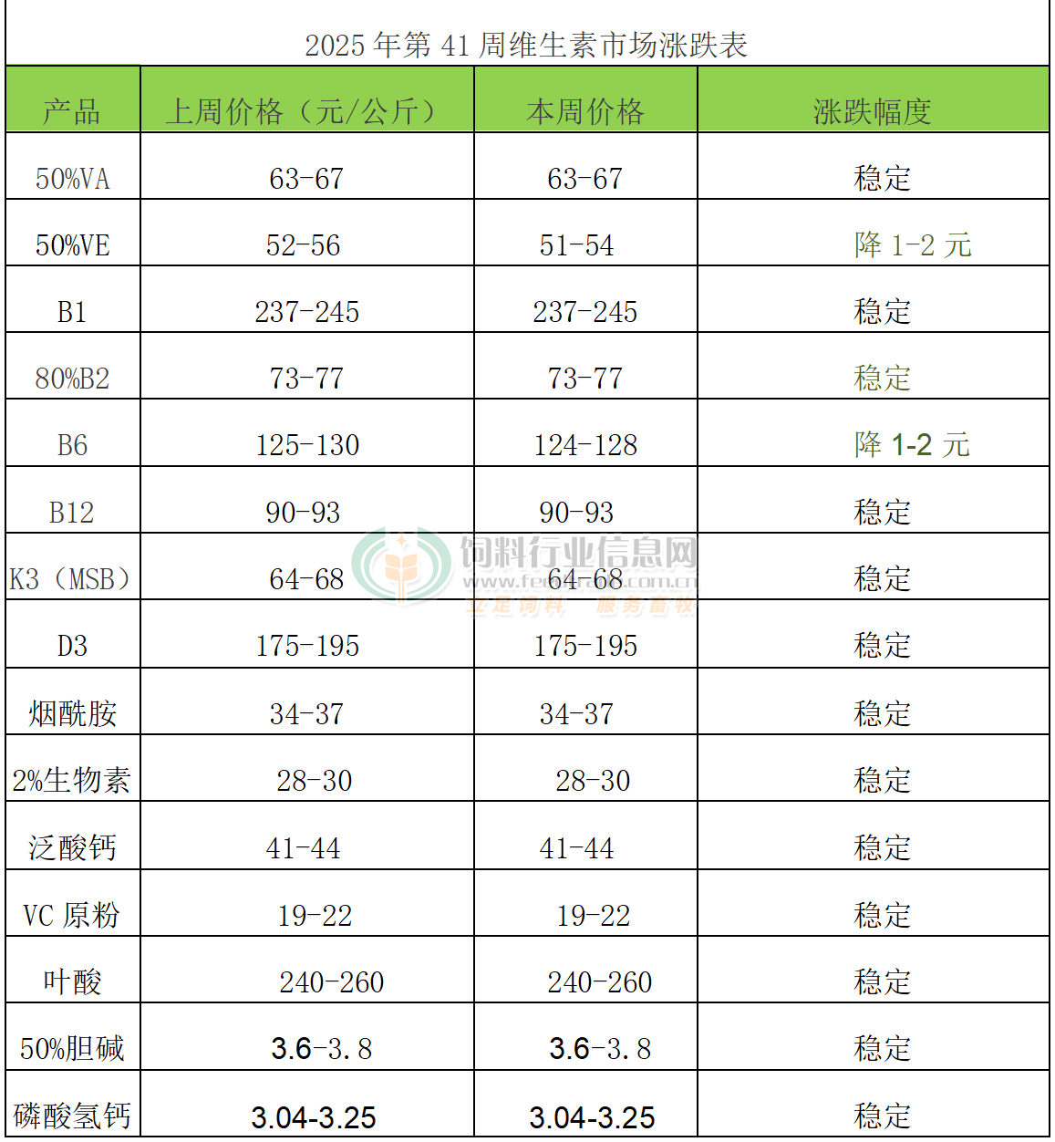 VE:本周VE市场报价51-54元/公斤。欧洲VE市场报价6.3-6.9欧元/公斤。山东新和成VE生产线计划于6月上旬开始检修10-12周。浙江医药昌海生物分公司VE生产线计划自6月初检修至9月初。帝斯曼VE生产线计划从7月中旬起按计划停产检修6周。北沙制药计划7月开始停产检修10-11周。7月16日市场称国内厂家签单价格小涨,市场购销好转。8月7日BASF宣称VE产品解除不可抗力状态。9月8日市场称帝斯曼VE粉停报。