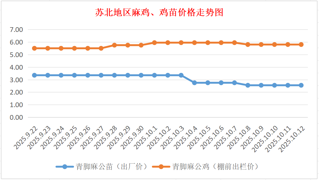 苏北地区麻鸡、鸡苗价格走势图(图源:鸡病专业网)