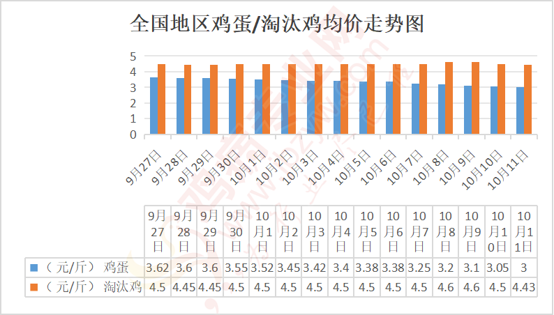 黑龙江地区:伊春鸡蛋3.05-3.1元/斤,淘汰鸡4.6-4.7元/;