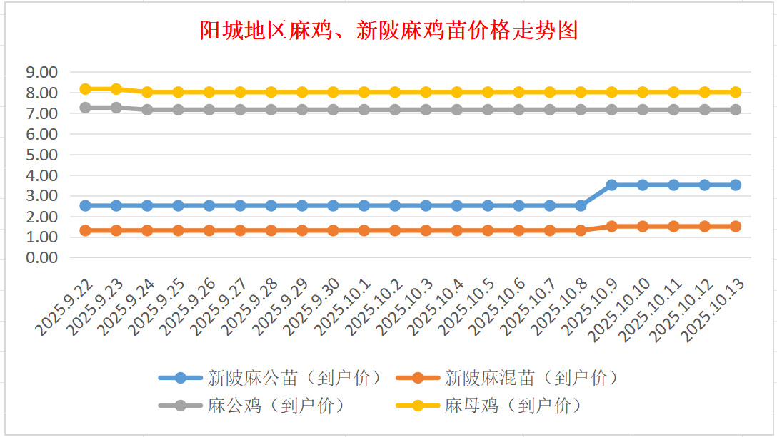 阳城地区麻鸡、新陂麻鸡苗价格走势图(来源:鸡病专业网)