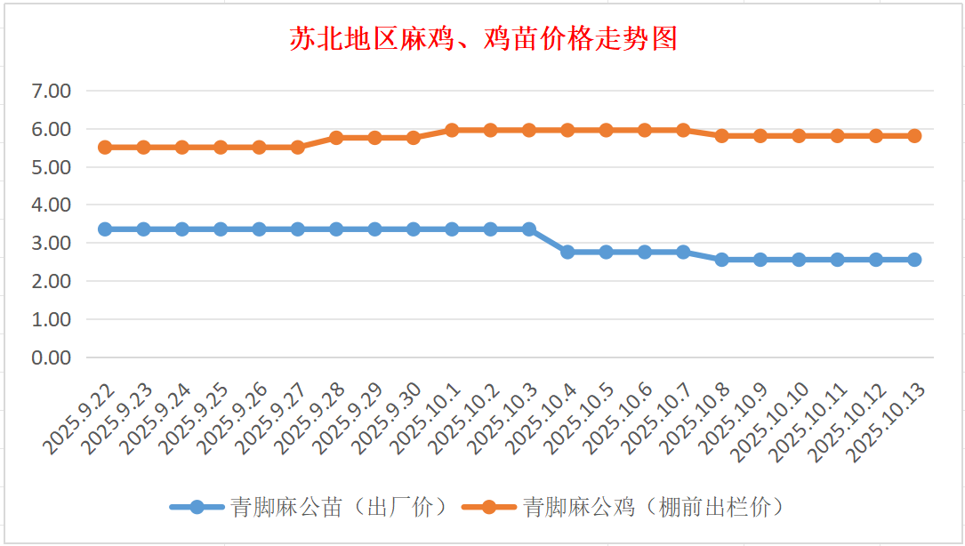 苏北地区麻鸡、鸡苗价格走势图(图源:鸡病专业网)