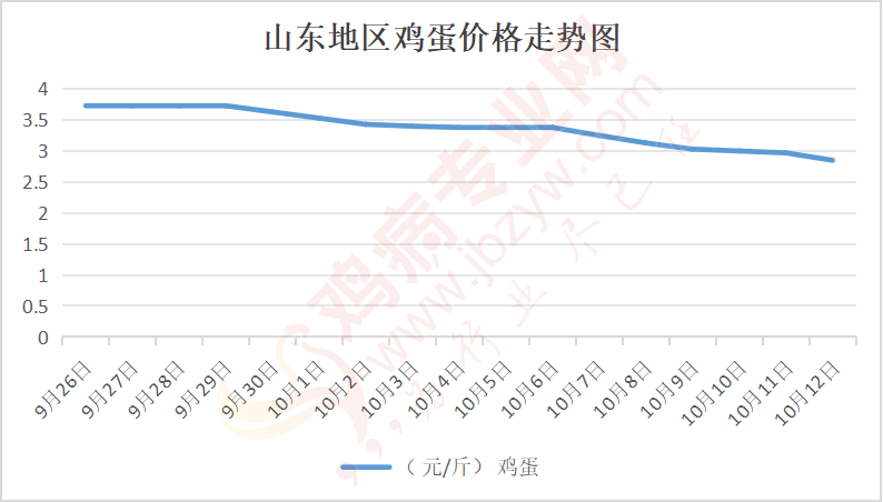 鸡病专业网消息:10月12日,山东地区莱阳鸡蛋2.9元/斤,落;青岛鸡蛋2.9元/斤,落;诸城鸡蛋2.9元/斤,落;安丘鸡蛋2.9元/斤,落;昌乐鸡蛋2.9元/斤,落;寿光鸡蛋2.9元/斤,落;昌邑鸡蛋2.9元/斤,落;高密鸡蛋2.9元/斤,落;青州鸡蛋2.75元/斤,落;临朐鸡蛋2.75元/斤,落;莱州鸡蛋2.9元/斤,落;威海鸡蛋2.9元/斤,落;临沭鸡蛋2.7元/斤,落;沂水鸡蛋2.7元/斤,落;沂南鸡蛋2.7元/斤,落;莒南鸡蛋2.7元/斤,落;兰陵县鸡蛋2.7元/斤,落;日照鸡蛋2.7元/斤,落;莒县鸡蛋2.7元/斤,落;日照辛萁商贸鸡蛋2.7元/斤,落;泗水鸡蛋价格81元/30斤,落;济宁、汶上鸡蛋价格81元/30斤,落;梁山、东平红蛋价格81元/30斤,落;枣庄滕州地区鸡蛋混码主流到户83元/30斤,落;泰安地区新泰鸡蛋价格81元/30斤,落;菏泽地区曹县主流到户81元/30斤,落;成武鸡蛋价格81元/30斤,落;单县到户81元/30斤,落;聊城莘县79元/30斤,落。