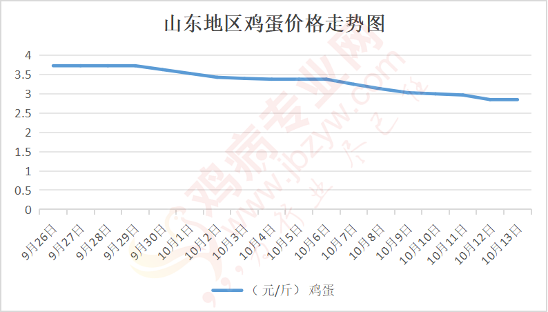 鸡病专业网消息:10月13日,山东地区莱阳鸡蛋2.9元/斤,稳;青岛鸡蛋2.9元/斤,稳;诸城鸡蛋2.9元/斤,稳;安丘鸡蛋2.9元/斤,稳;昌乐鸡蛋2.9元/斤,稳;寿光鸡蛋2.9元/斤,稳;昌邑鸡蛋2.9元/斤,稳;高密鸡蛋2.9元/斤,稳;青州鸡蛋2.75元/斤,稳;临朐鸡蛋2.75元/斤,稳;莱州鸡蛋2.9元/斤,稳;威海鸡蛋2.9元/斤,稳;临沭鸡蛋2.7元/斤,稳;沂水鸡蛋2.7元/斤,稳;沂南鸡蛋2.7元/斤,稳;莒南鸡蛋2.7元/斤,稳;兰陵县鸡蛋2.7元/斤,稳;日照鸡蛋2.7元/斤,稳;莒县鸡蛋2.7元/斤,稳;日照辛萁商贸鸡蛋2.7元/斤,稳;泗水鸡蛋价格81元/30斤,稳;济宁、汶上鸡蛋价格81元/30斤,稳;梁山、东平红蛋价格81元/30斤,稳;枣庄滕州地区鸡蛋混码主流到户83元/30斤,稳;泰安地区新泰鸡蛋价格81元/30斤,稳;菏泽地区曹县主流到户81元/30斤,稳;成武鸡蛋价格81元/30斤,稳;单县到户81元/30斤,稳;聊城莘县79元/30斤,稳。
