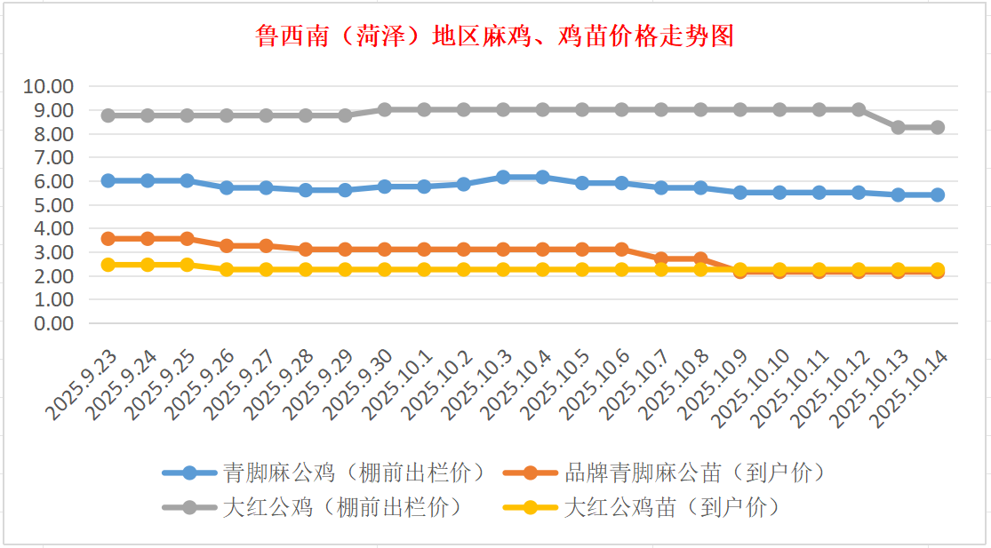 菏泽地区麻鸡、鸡苗价格走势图(来源:鸡病专业网)