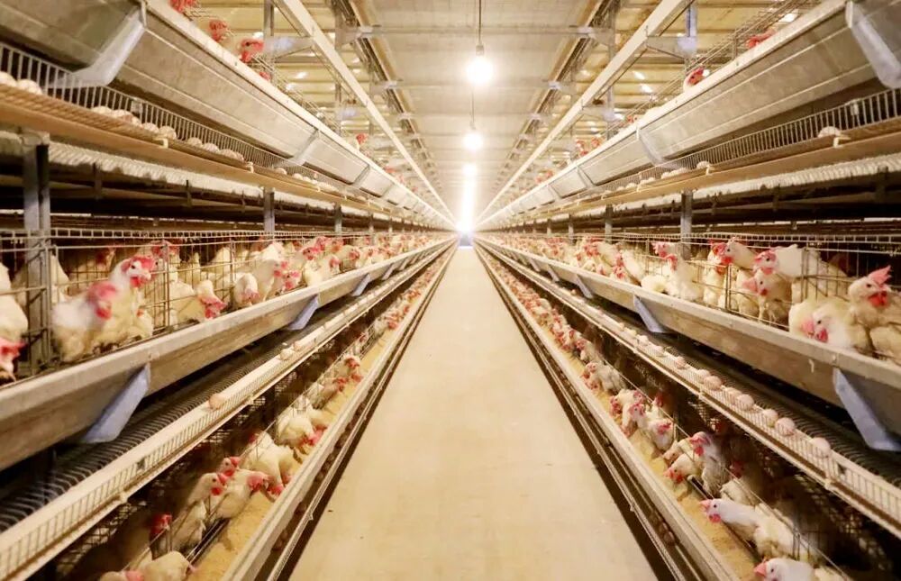 广西爱咯乐农牧科技有限公司鸡舍配备多层全自动笼养设备(黄家胜 摄)