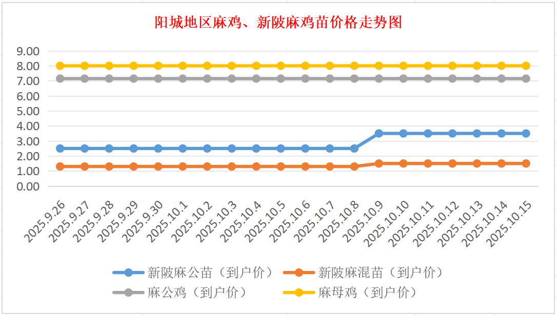 阳城地区麻鸡、新陂麻鸡苗价格走势图(来源:鸡病专业网)