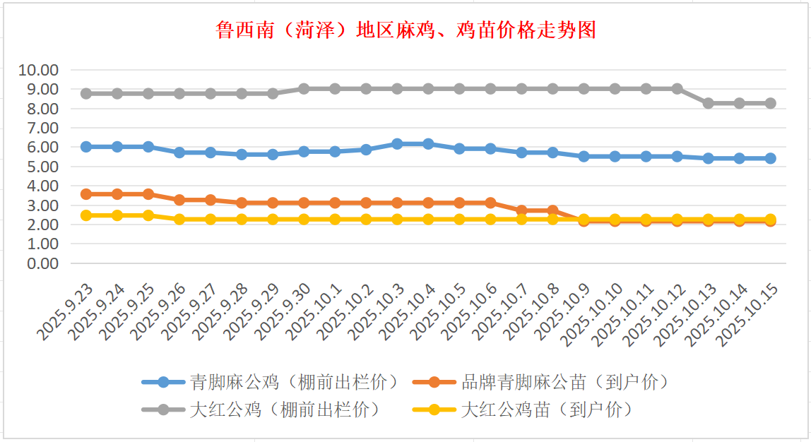 菏泽地区麻鸡、鸡苗价格走势图(来源:鸡病专业网)