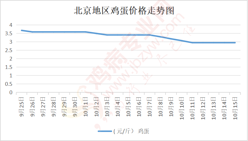 鸡病专业网消息:10月15日,北京大洋路鸡蛋主流批发价格130-135元/44斤,稳,走货138-140的也有,到货4台,成交灵活,走货较快;回龙观鸡蛋130元/44斤,稳;顺义石门鸡蛋130元/44斤,稳。