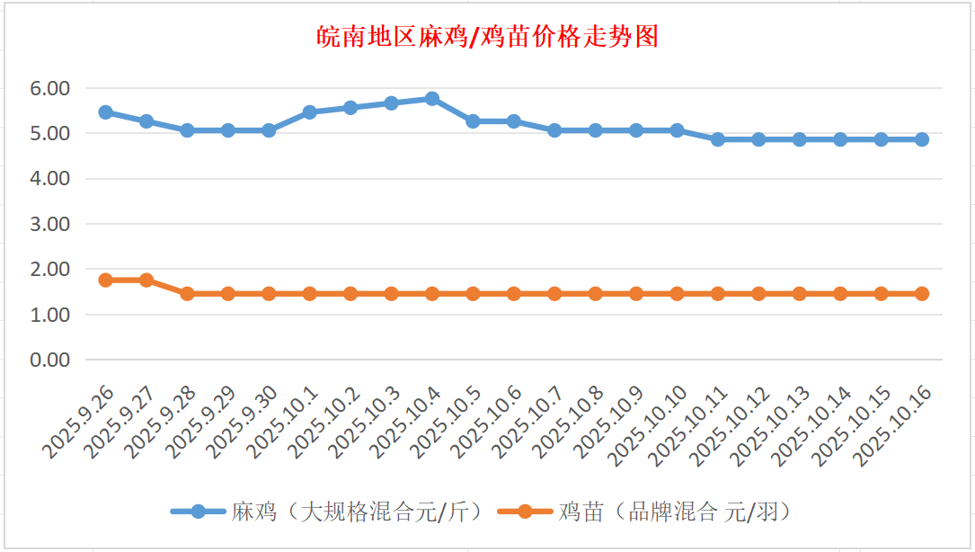鸡病专业网独家信息:2025年10月16日皖南地区817-麻鸡行情最新走势