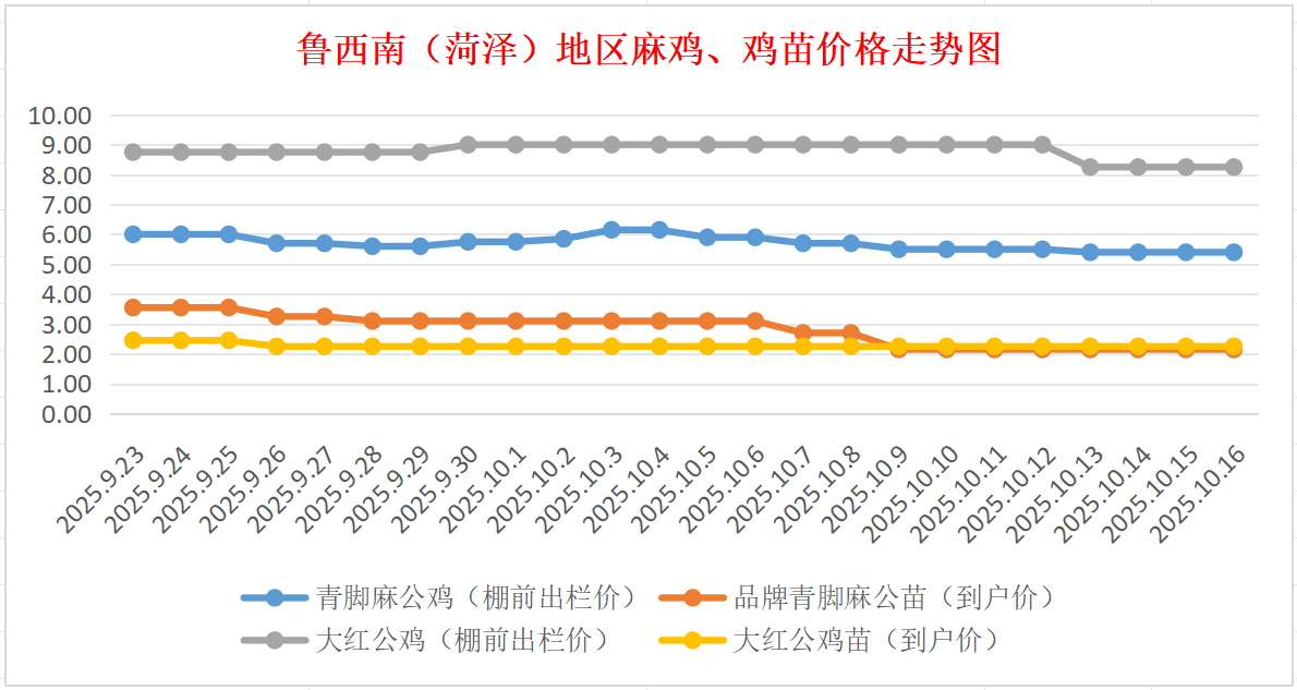 菏泽地区麻鸡、鸡苗价格走势图(来源:鸡病专业网)
