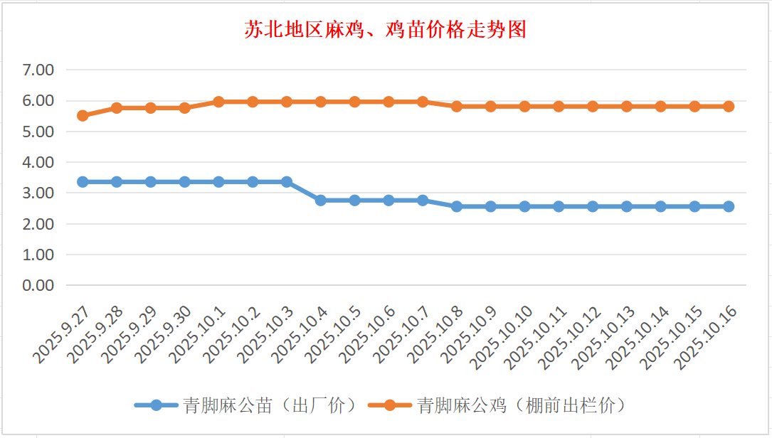 苏北地区麻鸡、鸡苗价格走势图(图源:鸡病专业网)