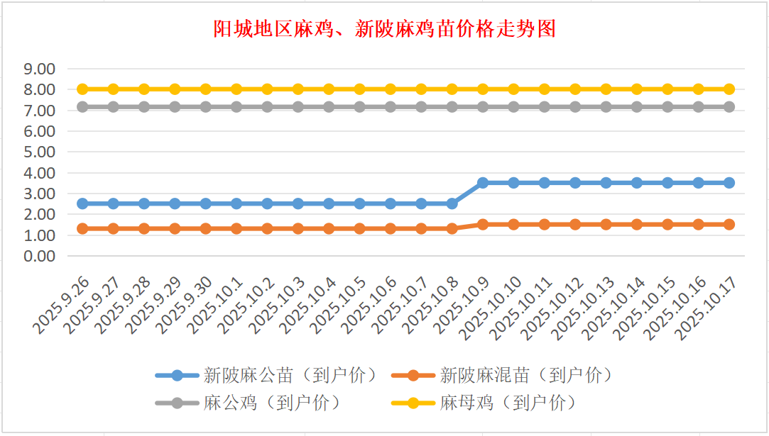 阳城地区麻鸡、新陂麻鸡苗价格走势图(来源:鸡病专业网)