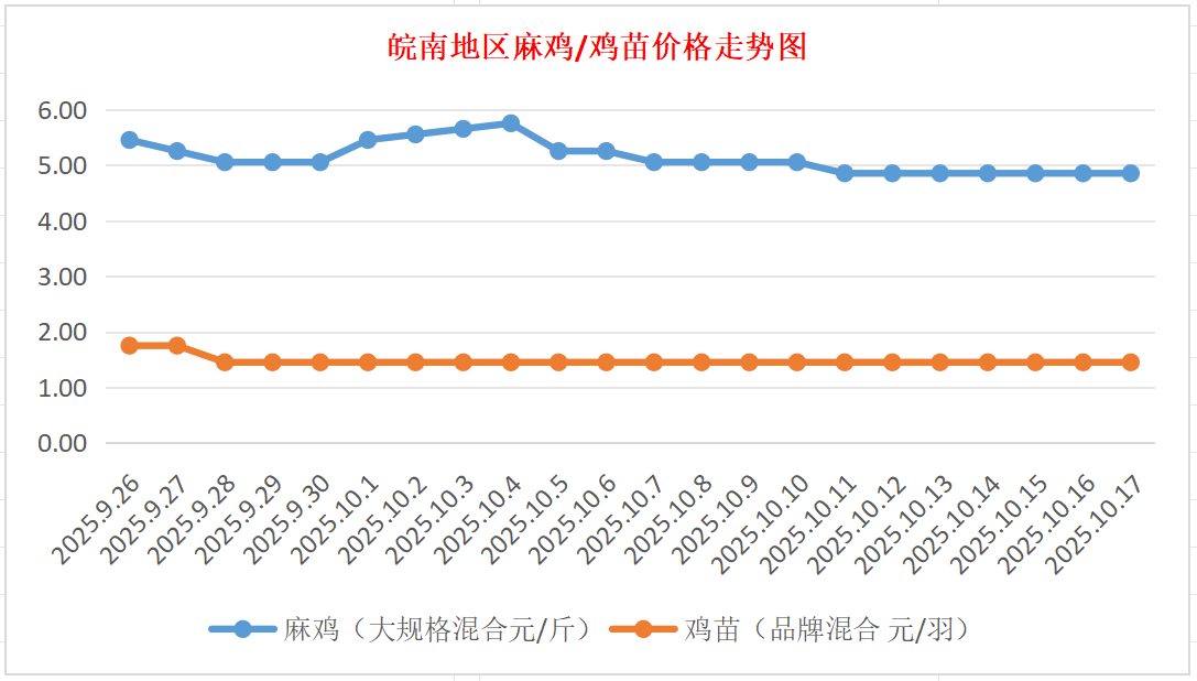鸡病专业网独家信息:2025年10月17日皖南地区817-麻鸡行情最新走势
