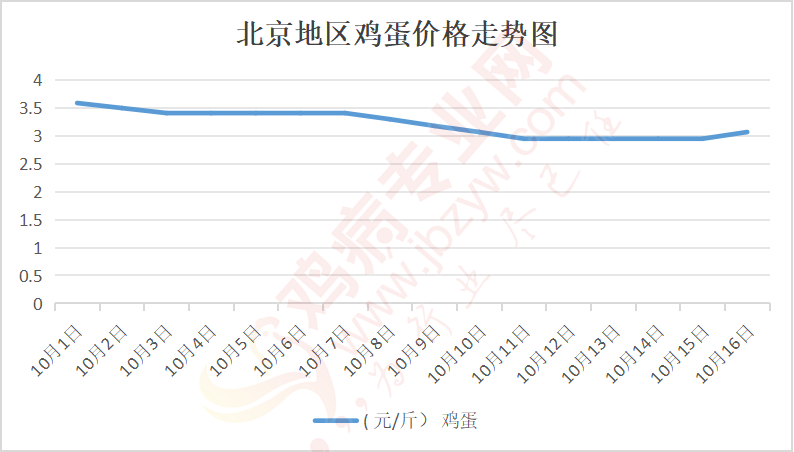 鸡病专业网消息:10月16日,北京大洋路鸡蛋主流批发价格135-140元/44斤,涨,到货6台,成交灵活,走货较快;回龙观鸡蛋135元/44斤,涨;顺义石门鸡蛋135元/44斤,涨。