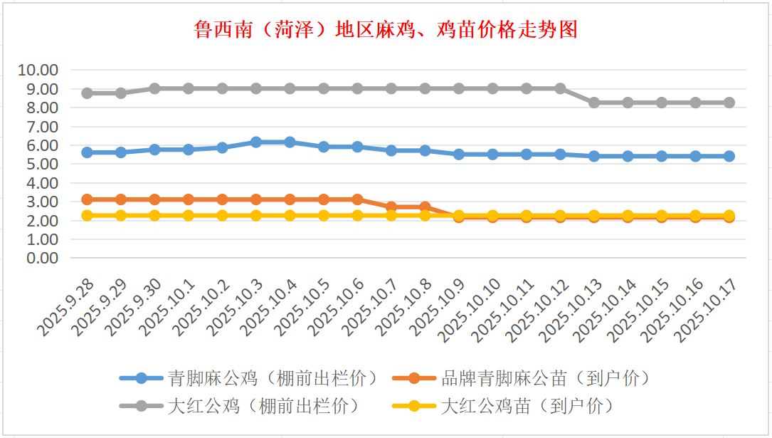 菏泽地区麻鸡、鸡苗价格走势图(来源:鸡病专业网)