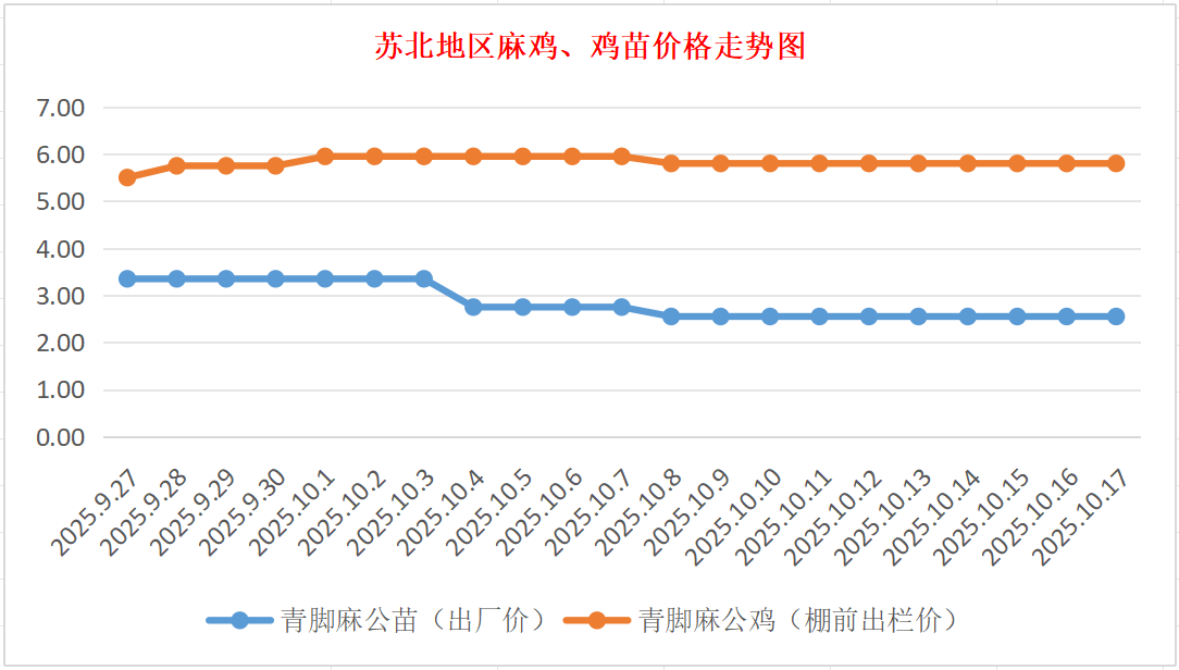 苏北地区麻鸡、鸡苗价格走势图(图源:鸡病专业网)