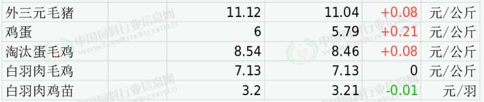 白羽肉毛鸡价格稳定。市场供应较为充足,屠企基本处于满宰状态,但冻品市场走货欠佳,需求端表现不佳,无法对价格起到有力的支撑作用,供需双向利空,短期内市场供需状况未得到明显改善,预计短期肉鸡价格窄幅震荡,反弹乏力。今日主产区山东白羽肉毛鸡均价6.84元/公斤,与昨日价格持平;辽宁均价7.00元/公斤,与昨日价格持平;主销区江苏均价8.05元/公斤,与昨日价格持平。