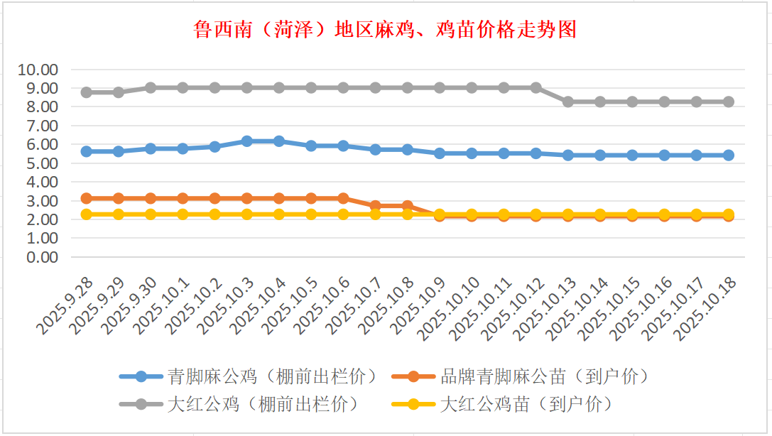 菏泽地区麻鸡、鸡苗价格走势图(来源:鸡病专业网)