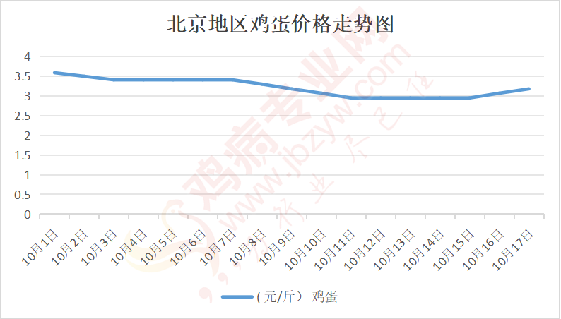 鸡病专业网消息:10月17日,北京大洋路鸡蛋主流批发价格140-141元/44斤,涨,到货6台,成交灵活,走货一般;回龙观鸡蛋140元/44斤,涨;顺义石门鸡蛋140元/44斤,涨。