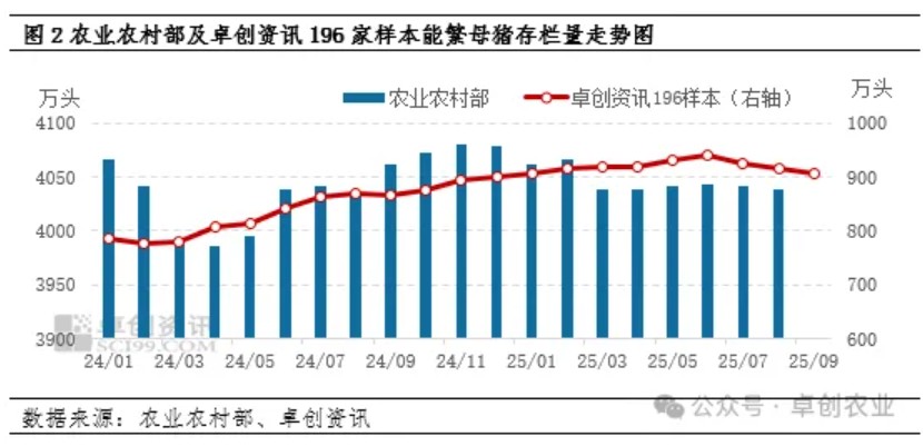 利空因素:一方面,生猪供应压力尚存!按照母猪存栏变化,虽然,24年末,母猪存栏环比下降2万头,但是,由于今年4-7月份仔猪新生规模持续增加,理论来看,2025年四季度适重标猪供应水平逐月增多!从机构数据分析,10月份,集团以上猪企出栏计划增加近5.5%,头部猪企出栏计划较多,且,受官方政策性调价,部分头部猪企本月出栏计划减重1-2公斤,市场供应压力依然较大,产能仍处于集中兑现阶段;